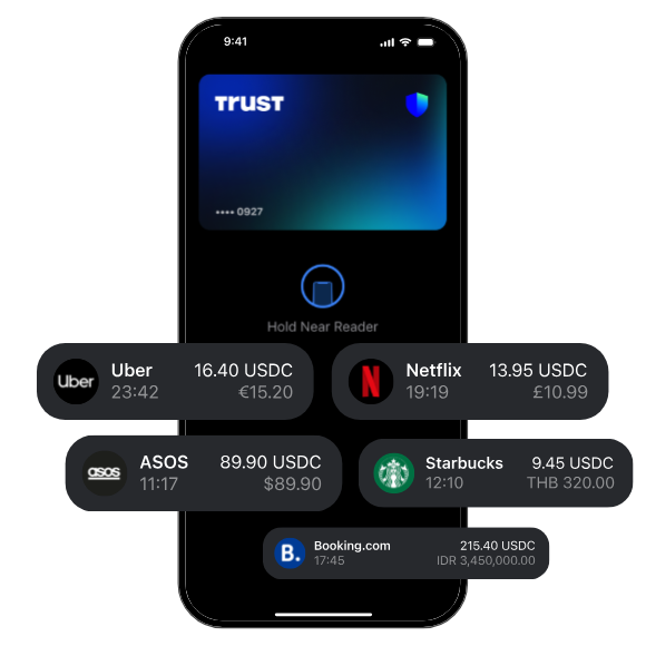 Payment goes directly from your Trust Wallet. Use your crypto card at millions of online and offline stores.